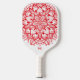 This pickleball paddle for him or her has a stylish red mandala flower against a white background. Personalise name on front and initials on back.