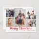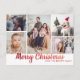 Stylish Red Merry Christmas 5 Photo Collage Holiday Postcard