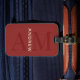 This stylish dark red luggage tag feature a modern layout with vertical monogram in big type, and your name in prominent cream horizontal type.
