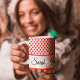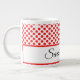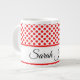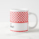 Stylish Red Polka Dots Pattern Custom Name Large Coffee Mug