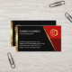 The card is encapsulated by a gold stripe line and houses your prestigious name and job title. Just underneath are the contact details and a slogan caption option.
