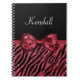 Stylish Red Zebra Print FAUX Glitz Bow With Name Notebook