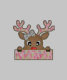 A playful and stylish reindeer design featuring glittery pink and gold antlers, a polka-dotted bow on its head, and a cute expression. The reindeer peeks over a pink and gold patterned sign, perfect for festive decorations with a chic and modern twist.