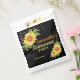 Stylish Retirement party favour bag with a black background , watercolor yellow floral sunflowers and string lights. A great item to decorate a party table for retirements, birthdays, engagement, baby shower , wedding anniversary and many more. Customise with the event then personalise with the name and date. background colour can be changed if needed