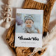 Retro elegant baby shower thank you card. Fully customisable with your baby's picture, name and other details. Editable colours and background.