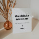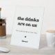 Stylish retro black & white Drinks are on us Pedestal Sign