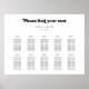 Horizontal wedding seating chart. The chart in the example has 10 tables and 100 names, but you can easily edit it to suit your needs with the design tool. A retro chic theme: adopt this slightly vintage and stylish typographic design for your wedding stationery, with a classic black and white theme. Customisable text colours and backgrounds.