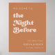 Welcome to the Night before: rehearsal dinner signage. A retro chic theme: adopt this vintage and stylish typographic design for your wedding stationery, with a brown sugar colour theme. Easy to mix and match with our similar stationery available in burnt orange, terracotta & peach pink. Fully customisable text colours and backgrounds.