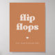 Flip flops for your dancing feet wedding sign. A retro chic theme: adopt this vintage and stylish typographic design for your wedding stationery, with a brown sugar colour theme. Easy to mix and match with our similar stationery available in burnt orange, terracotta & peach pink. Fully customisable text colours and backgrounds.