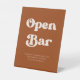 Stylish retro Burnt Orange Wedding Open Bar Pedestal Sign