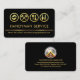 An all black cover is accentuated by a faux gold line near the base of the card. Over at the top are gold handyman tools logo which you can use. The tools can represent some of the services that you offer eg. The hand drills can be for carpentry, the hammer for home repairs, the brush-scrapper for painting an the trowel-fork for landscaping-gardening. Their usage is left to your own interpretation. Below the logo is the business name "HANDYMAN SERVICE" which you can change with the contact details near the base.