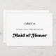 A simple and elegant text card keepsake to thank your bridesmaid. A retro chic theme: adopt this slightly vintage and stylish typographic design for your wedding stationery, with a classic black and white theme. Customisable text colours and backgrounds.