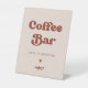 Stylish retro Peach Pink Wedding Coffee Bar Pedestal Sign