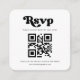 Simple and modern: a RSVP response card with a QR code that leads to your wedding website. Easy to customise with your own colours and QR code.