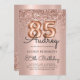 Stylish Rose Gold Glitter Balloon 85th Birthday Invitation