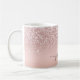 Girly Glam Blush Rose Gold Glitter Metallic Monogram Name Script Custom Personalised Coffee Mug. These design featuring your first name in a pretty hand lettered style swash tail font signature typography on blush pink rose gold faux metallic foil with glam sparkle glitter border. These are easy to customise it. Great stylish feminine housewarming gift, also for birthday, mother’s day, wedding, sweet 16 birthday party, bridal shower, baby shower, for graduation party and It’s for the girl who loves unique sparkle stylish things.