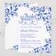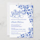 © Socialite Designs. An elegant royal blue invitation with gorgeous corner decorative swirls ready to be personalised for your special event. Font style, text and paper type can be changed. Need HELP with customising or additional products with this design? Please do not hesitate to contact Socialite Designs.