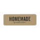 Stylish rustic sticker with the words "Homemade" in bold font and a stylish script for your name or store name in dark grey against a faux kraft background. It is an ideal product label for crafters and makers of handmade goods.