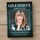 Rustic country themed photo graduation announcement cards. This design features rustic style distressed typography reading "Graduate", the year of graduation, school name and of course the grads name. The photos highlight the card and are accented by a rich teal, blue-green colored wood plank print background. The back of the card offers personalized text spaces for information about your graduation or can be left empty if you wish to hand write a message. Perfect for the high school, college and university grad students and seniors.