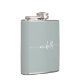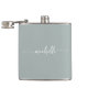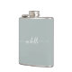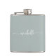 Elegant Minimalist Modern Sage Green Monogram Name Script Signature Custom Personalised Flask. Featuring first name in a pretty hand lettering swash tail font calligraphy (or typography) on sage green or dusty green colour background. These are easy to customise it. Great stylish feminine bachelorette party gift, housewarming gift, also for Bachelorette Party, birthday, mother’s day, sweet 16 birthday party, wedding, bridal shower party, for graduation party and It’s for the girl who loves unique stylish things.