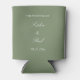 Stylish Sage Green Wedding Favour Can Cooler, please personalise the names of the bride and groom and the wedding date using the online personalisation template before ordering. The text automatically copies across to the other side of the can cooler so that both sides display identical text.
