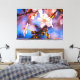Stylish pink sakura flowers, Japanese cherry blossoms on a tree branch. Red leaves, blue background. Extra-large stylised digital painting from a photograph. Wrapped or stretched canvas art to decorate your place. Floral prints, and gifts for anyone. You can transfer this design to a variety of other products of your choice, large or small, including affordable low-price prints, and gifts. Please, use the "Edit Design" button to adjust the picture to the shape of the particular product. It will transfer you to the Designer Tool. Use the "Fit/Fill" option (right-side menu of the Designer Tool). You can scale, rotate, flip the image on the product template and even add some text to it. Just be creative, have fun, buy one, and be happy!
