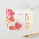 This trendy Wedding table number card has a salmon pink, soft pink, and orange colour scheme with lots of tulips lining the left and bottom side of the postcard. On the top and right side, you can easily customise the table number and the names of the bride and groom along with the date of the wedding ceremony. The colours and design of this Wedding Invitation make it suitable for a spring or summer wedding.