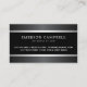 Elegant, black and grey, professional business cards or personal profile cards with your name and title/company name printed on the front. At the top and bottom are printed satin grey and silver gradient borders. White and grey text. On the back are customisable template fields for name, title/company name/speciality and contact information. A minimal, classy and modern design. Great for an attorney, lawyer, accountant etc