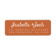 Simple, modern and stylish wedding return address label with your names in white elegant handwritten script on a burnt orange background. Simply add your names and address. Exclusively designed for you by Happy Dolphin Studio. If you need any help or matching products please contact us at happydolphinstudio@outlook.com. We're happy to help you make your wedding the most beautiful day!