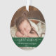 Elegant Stylish Trendy Script My First Christmas Baby Photo Green Ornament with Snowflakes back