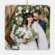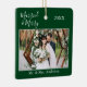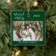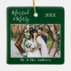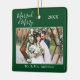 Modern Stylish Calligraphy Script, Simple Minimalist, Married & Merry Wedding Photo Christmas Ceramic Ornament - Forest Green Background