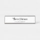 Professional modern desk name plate featuring your monogram name showcased in a stylish signature script and your company or title in simple lettering.