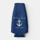Stylish Calligraphy Script Nautical Lake House Anchor Family Name Navy Blue Bottle Cooler
