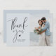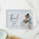 wedding thank you photo card with elegant black stylish script and a thank you message to your guests. The image can be personalised.