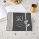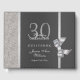 Beautiful silver and black birthday party Guestbook suitable for any person. A very elegant stylish and classy silver and black design with a pretty silver bow with a rhinestone jewel gem diamond center with matching colored ribbon and a sophisticated silver glitter sequin border. All text, font, font color and size is customizable to meet your requirements. If you would like help to customize your product or would like matching products please contact me through my store and i will be very happy to help you.