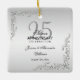 Stylish and elegant 25th wedding anniversary ornament, suitable for silver wedding anniversary events. Beautiful stylish silver swirls and flourishes corner decorations on a pretty silver background. All text is fully customisable to meet your requirements. If you need help to customise your product or would like matching products please contact me through my store and i will be very happy to help you.