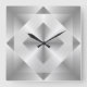 A stylish geometric pattern in silver tones.The metallic silver tone and diamond,triangle and square shapes add a unique look to your modern square wall clock.