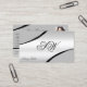 Stylish Silver Grey Curved Lines Monogram Photo Business Card