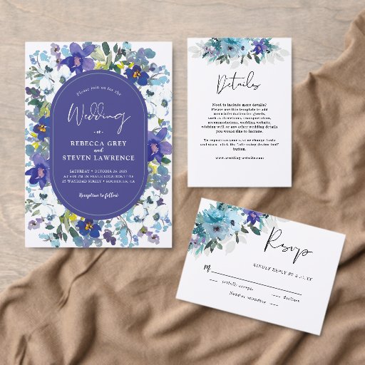 Elegant spring dusty blue purple floral wedding thank you card. Express your gratitude in style with this unique wildflower-inspired wedding thank you card, featuring a stunning arrangement of dusty blue, purple, and lilac florals. Delicate watercolor wildflowers and lush greenery create a soft, romantic aesthetic, reminiscent of a blooming spring or summer meadow. Elegant script paired with classic serif typography adds a sophisticated touch, making this card both heartfelt and refined. Perfect for nature-loving couples, this beautifully designed thank you card is a thoughtful way to show appreciation to your guests while complementing your wedding’s floral theme.