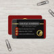 Your prestigious name and job title are at the top with a faux gold stripe accentuating your position. Card details are inside their respective gold buttons inside a vertical red tab. A a gold global logo you can use is placed at the lower right corner of the card.