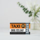 Overleaf, in a white cover, the taxi logo is at the top followed by the business name and its contact details.