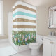 Stylish Tan and Aqua Flowers and Stripes With Name Shower Curtain