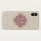 A stylish tan art deco arched scallop pattern Barely There iPhone X Case with a light mauve quatrefoil badge you can personalise by easily adding your own monogram and name. This is part of the Warm Sand Scallops Ash Rose Monogram Spring Collection.