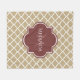 Stylish Tan Quatrefoil Burgundy Monogram and Name Fleece Blanket