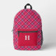 Stylish Tartan Plaid Pattern Monogrammed Red Printed Backpack