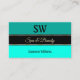 Stylish Teal Borders on Black Monogram and Photo Business Card