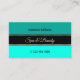 Make a lasting impression with this stylish business card design featuring light and dark teal coloured stripes on black with pretty shimmery small gold decor.