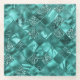 Stylish Teal Shimmer Glitter and Foil Diamonds Glass Coaster