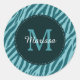 Stylish Teal Zebra Print With Monogram and Name Classic Round Sticker