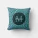 Stylish Teal Zebra Print With Monogram and Name Cushion